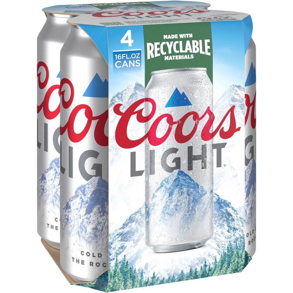 Coors Light 16 Oz 4 Pkt Can
